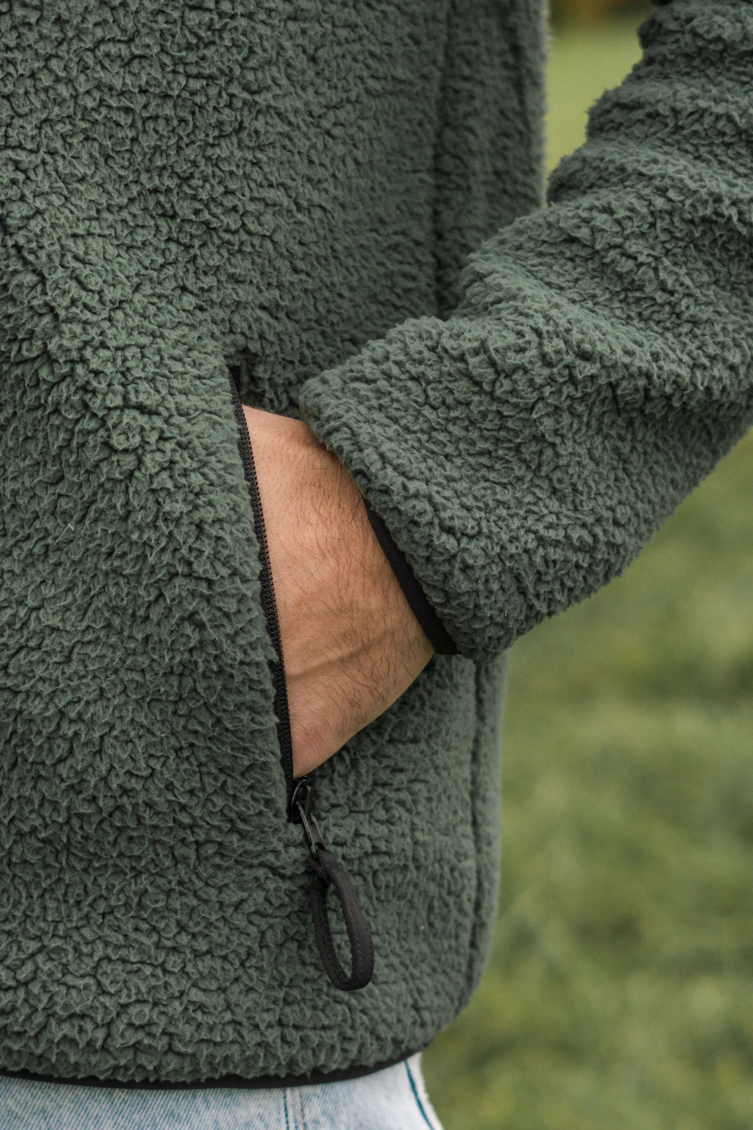 Our unisex Sherpa Fleece Jacket is the perfect garment to keep you warm during the colder months. Made from 100% polyester, it's extra soft and offers optimal comfort. The simple design with the contrasting olive chest pocket gives the jacket a sporty, fashionable touch. With three zippered pockets and an elastic waistband, it's also practical and functional. Whether you're snuggling up at home or on cold days in the mountains, the Sherpa Fleece Jacket is a versatile must-have for sports and outdoor enthusiasts.